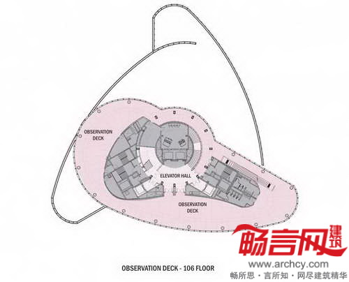 住宅位于大楼59到77层,包含12个两室或三室的套间,而83到98层包含9个套间。大楼的办公区域将采用开放式楼层方案,以方便租户改造。从顶层的观景平台,不受阻碍的城市视野将尽收眼底。