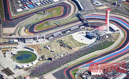 德克萨斯州Austin市中心西南部一条3.4英里长的新赛道承办了2012年一级方程式锦标赛、MotoGP摩托车赛和V8国际超级房车赛。当地Miro Rivera建筑公司赢得了设计能容纳12万人赛道入口的资格,该区域包括大型广场、瞭望塔、露天剧场和主看台。广场坐落于三个方向被赛道环绕的半岛型场地上,此外还有一个景观水池和宽敞的草坪,允许观众坐在草坪上观看赛车比赛。