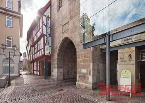 其他德国历史城市一样,Duderstadt充满了众多木质框架建筑,Gnaedinger建筑工作室为其中一栋古老建筑添加了金色块面结构,形成了博物馆的两翼。