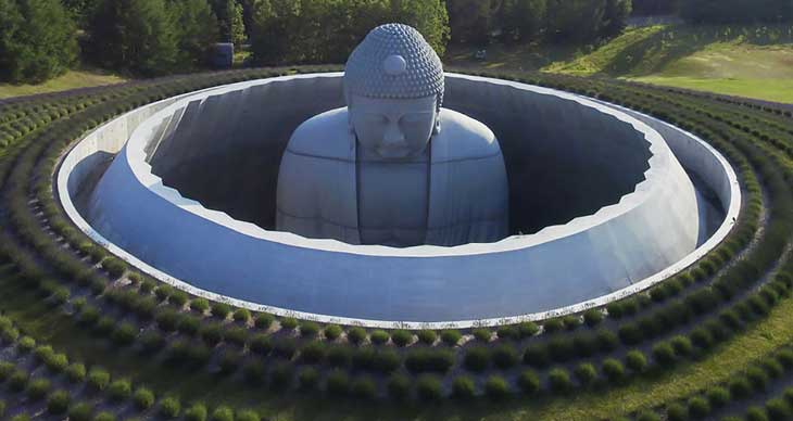 项目位于日本北海道,建筑师安藤忠雄设计了以巨大的佛像为中心的真驹内泷野陵园。设计师重点在于突出佛像的尺度,大佛已经有15年的历史。。新干预项目以塑像为中心,从山外角度,只能看到佛像的头部。为了看到大佛的身体,游客需要进入这一40米长的隧道。设计师表示,我们希望创造生动的空间序列,并提升大家对于雕像的期望。