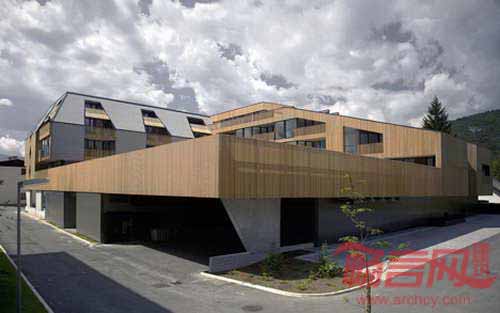 设计师将当地落叶松构成其他立面,并为墙面添加了垂直板,在阳台周围添加了木板条。