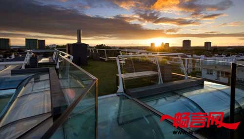 因为需要在两幢相邻的建筑顶上建造一个引人注目的居住空间,所以Richard Hywel Evans Architects(Studio RHE)设计了一座玻璃天桥将它们连接在一起。