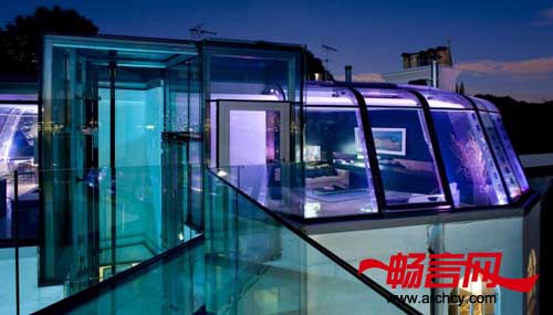 最后一步是安装一部玻璃电梯,可以直接到达位于两个天台上的公寓里。