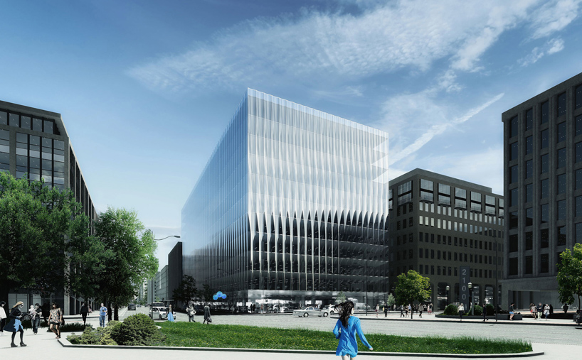 纽约REX建筑工作室公布了位于华盛顿特区的高级办公项目方案。项目坐落于城市“金三角”商务区,将容纳CBS华盛顿局和其他公司办公。周边是若干厚重的石砌混凝土建筑群,设有玻璃外墙的2050 M街项目将为用户提供丰富的视野和较小的干扰。外立面由900块相同的保温玻璃板组成,每块板材经过热压锻造工艺,具有微小弧度。