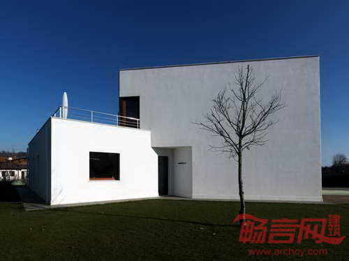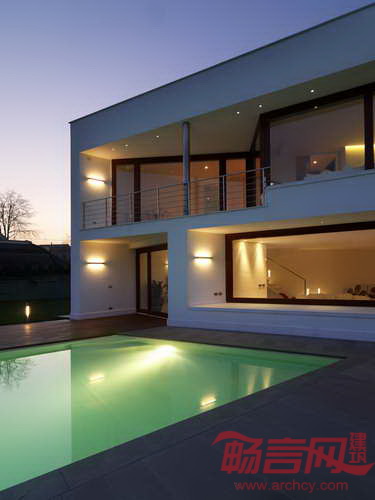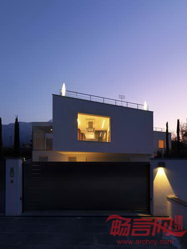 一层供房主使用,包含了一个宽敞的房间、更衣室和浴室。顶层包含大阳台,外带放松休憩的花园。夜幕降临时,建筑显示出量感深度,明亮的光线从建筑开口散出,明暗反差得以凸显。