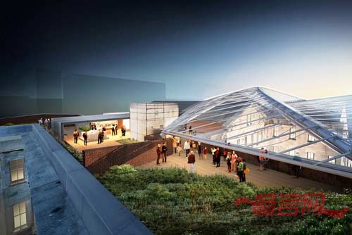 联通结构是外部环境和内部空间的媒介,并且使该内部空间有与外界不同的舒适感,最大规模的联通结构是该建筑的房顶。闪亮的玻璃天穹位于历史风格庭院的上方,创建了一个全年不变的新公共空间,天穹的拐弯处会收集雨水和雾气为房顶阳台花园提供自然灌溉资源。