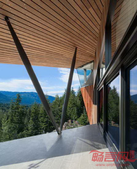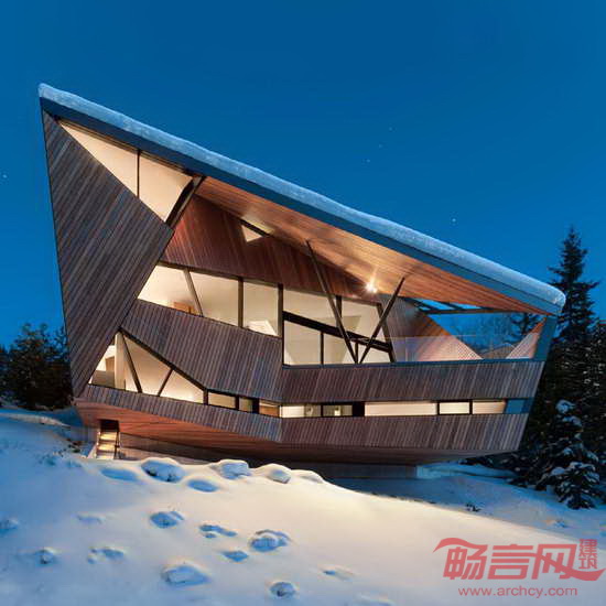 Patkau建筑事务所设计了位于加拿大英属哥伦比亚省的Hadaway住宅。项目坐落于俯瞰Whistler峡谷的山坡上,其尖尖的屋顶有利于将积雪导向场地内的存储区。建筑外形是对有限的占地面积和高度限制的直接回应。室内包含宽敞的起居室、餐厅和厨房,户外设有露台。屋面上的狭缝为屋内深处带来自然光照。
