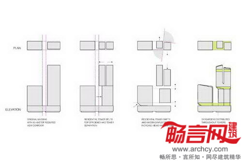 项目将包含两栋用于办公和住宅的塔楼——23层的办公楼与周边建筑规模相匹配,而53层的住宅楼则与其他建筑大相径庭。建筑的一楼大厅将大楼与街景连接起来,并提供了明亮的接待区和宽敞的咖啡厅;一个空中花园占据了整个第八层,人们得以拥有360度全景观赏城市天际线的机会,并且能在葱茏的绿洲里愉快地休息或休闲;住宅楼内还有另外两个空中花园,仅面对大楼住户开放,具有净化空气的功能。