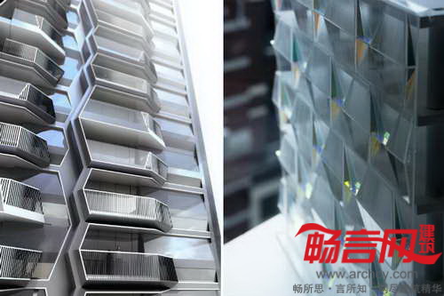 建筑立面图形包含四五种不同材质,立面玻璃可以通过侧向照明形成纹理图案。预计项目将于2016年完工。