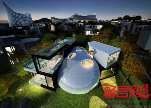首尔建筑设计公司Planning Korea完成了这座“蚕茧”房屋的设计方案,他们的设计灵感来源于济州岛的火山地貌和蚕茧的有机结构特点。房子第一阶段施工将在2012年9月启动,整个项目预计将于2015年完成。