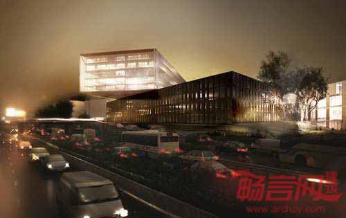 多层结构建筑围绕认同、多样和密集理念设计,下方是交通要道,包含酒店、办公、零售空间,总面积达15000平米,场地原先是一座加油站。