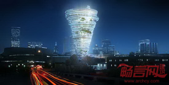 美国俄克拉荷马公司KKT完成了位于塔尔萨车库上方的摩天楼方案。项目灵感来自龙卷风,内部容纳了气候、风暴研究中心,涵盖顶层酒吧餐厅和草坪。夜幕降临,建筑灯光启动,周边来往车辆驾驶人会感到建筑如同正在旋转。KKT公司是受塔尔萨人民杂志邀请,做出这一区域复兴方案的。