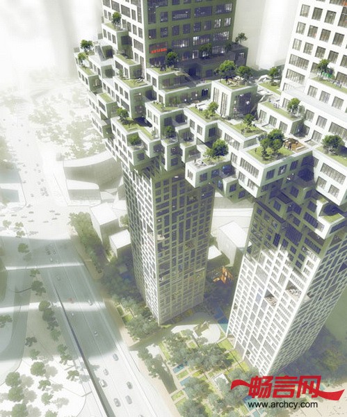 荷兰MVRDV在首尔设计了两座摩天大楼,两座大楼在半山腰处由一个云朵似的结构连接起来。