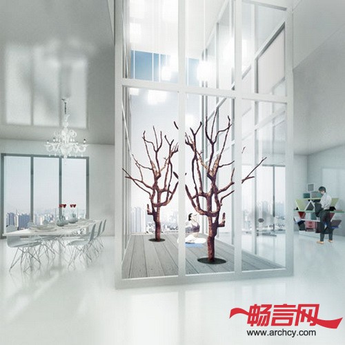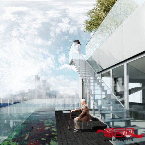 在大厦的54至60层是豪华公寓,其中一些是双层公寓。
