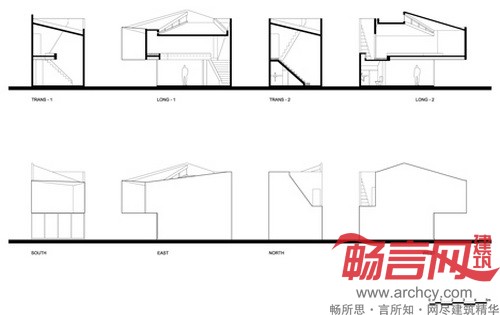 该建筑为向南朝向,然而作为一间艺术工作室,就需要避免阳光直射,为了实现这一点,设计师将上层结构向南探出,这样就遮住了一层的大窗户,同时还能直接看到屋外的花园景观。