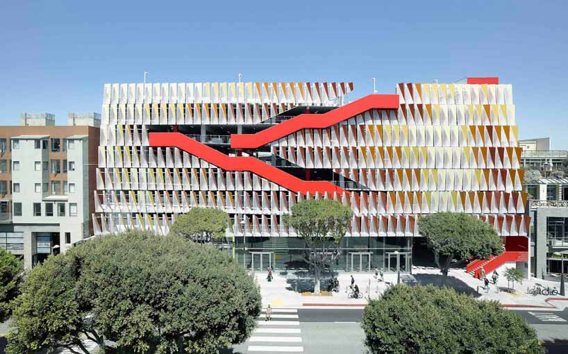 Behnisch建筑事务所同Jantzen工作室合作,共同设计了圣莫尼卡6号停车场项目,满足这一洛杉矶海岸城市市中心当地人及游客的停车需求。停车场所在区域涵盖多种活动,包括零售店、行人、骑自行车者、摩托车手和植物景观,同时包含休闲设施。停车场设计旨在提升城市活力,其外立面充满表现力,空间设计活泼。建筑外立面包含五彩斑斓的金属表皮,配合视觉醒目的室外楼梯。