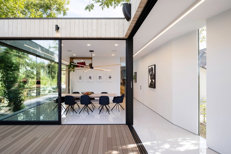 加州建筑师Dan Brunn设计的自宅是一座俯瞰小溪的木质狭长建筑。项目位于洛杉矶,名为“桥之家”,基地1200平米,坐落于拥有百年历史的Brookside社区。建筑师创建了同名的事务所,担纲此418平方米的住所设计,希望这个全时住宅能展现创新系统和前瞻性的设计流程。场地呈现出长方形,住宅尺寸是6*64米。其中20米长的部分跨越了一条自然中的小溪,项目也因此得名。设计师表示,由于桥梁因素,我们尽可能对土地较少干预,因而对环境的影响较小。