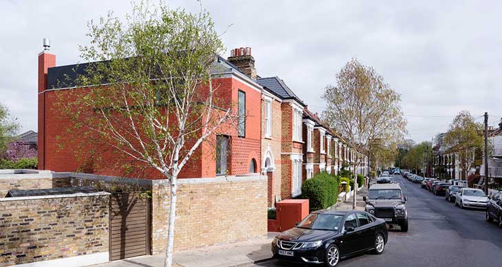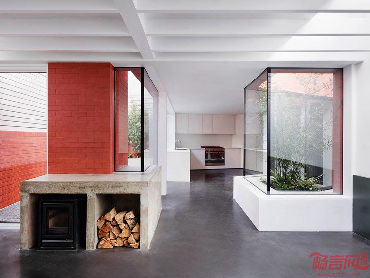 这座位于伦敦南部的房屋与周边维多利亚时期的建筑形成了反差。红色住宅位于一列排屋的尽头,得名于其红色的砖砌外立面。设计向传统砖砌建筑致敬,同时融入了当代风格。项目包含三个起居空间和一个开放式的一层,面积不大,却很实用。中央庭院和小后院为狭长的空间带来自然光照,同时不影响住户的私密性。