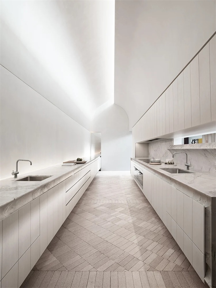 Smart Design Studio设计了Indigo Slam位于悉尼Chippendale社区,业主是一位艺术收藏家。该住宅具有雕刻混凝土的外立面内部,设有宁静的居住空间和宽敞的厅堂。极简的室内设计空间之间产生动态互动,光线成为主要的装饰元素。混凝土外墙的几何空间,随光线、阴影、阳光和云层的不同而变化,为相邻的城市公园引入了生动的背景。建筑内部空间宽裕,但并非华而不实,极简装饰以光线和砖铺地板为亮点。