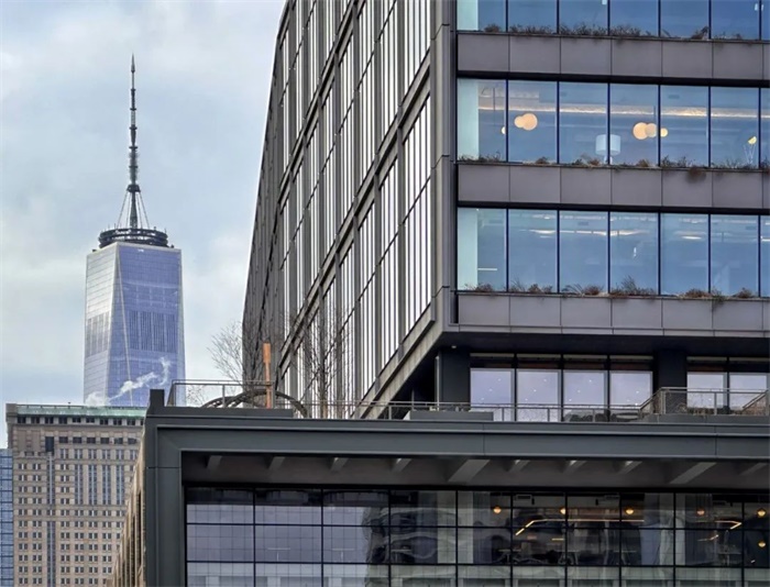 由于大楼直接位于哈德逊河绿道边上,我们在设计中鼓励自行车通勤,通过大型自行车停车设施将工作场所与更健康、更可持续的通勤基础设施联系起来。
