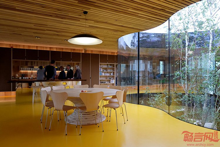 项目位于NHS医院场址内,新建Maggie中心为癌症病人提供情感和社会协助。业主诉求是营造热情、舒适、令人振奋的医疗环境。接替福斯特、库哈斯和盖里等大师的是伦敦丹迪的dRMM事务所。设计师认为项目“更注重内在,而非形式”,设计比外在呈现的木头盒子多得多。