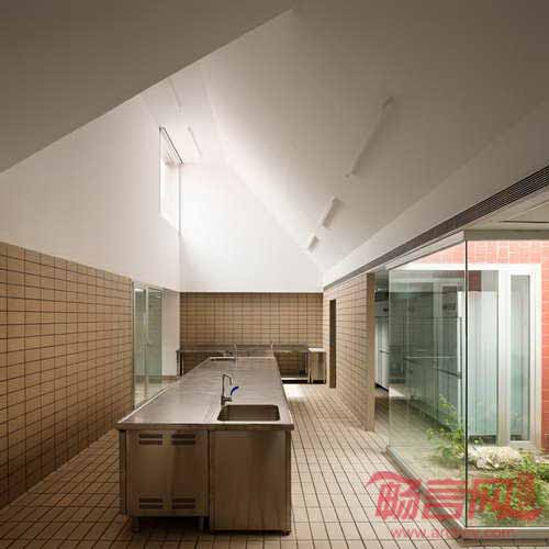 项目设计旨在通过斜屋顶达到开敞布局的目的,在创造建筑新几何结构的同时,反映当地建筑语言。新屋顶将教学厨房、教室同公共餐厅和酒吧关联起来。容纳菜园和历史院墙的庭院如今成为了辅助空间。