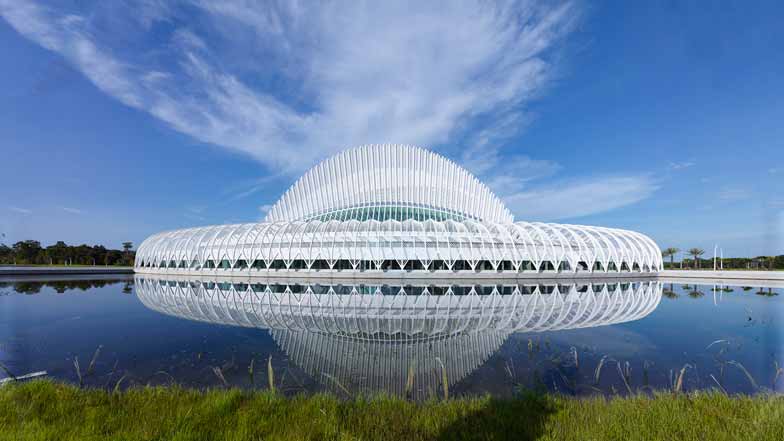 西班牙建筑师圣地亚哥·卡拉特拉瓦完成了外观如同笼子的佛罗里达理工大学建筑。该项目位于美国雷克兰市,设计师卡拉特拉瓦此前以设计比利时列日居尔曼高铁火车站闻名。佛罗里达理工大学是一所新建大学,校园占地68公顷,本月晚些时间将迎来第一批学子。大学特色专业是科学、技术、工程、数学,校园围绕湖泊北侧的创新科技大楼而建设。