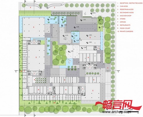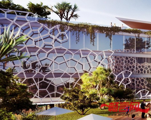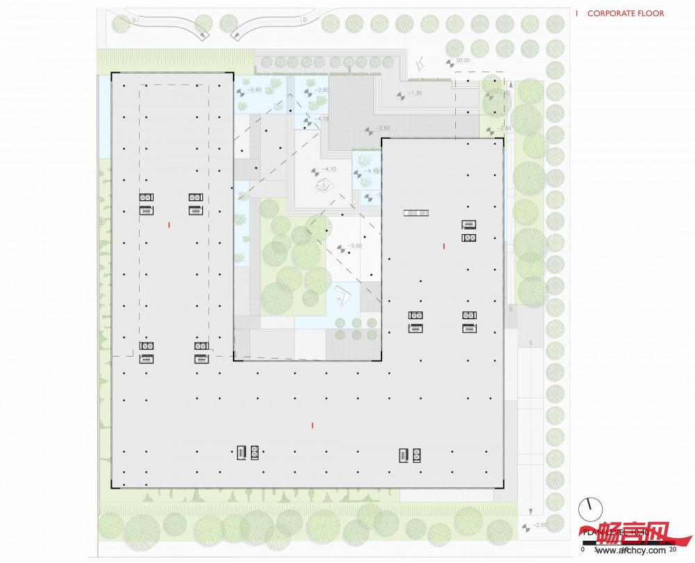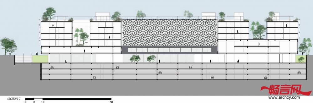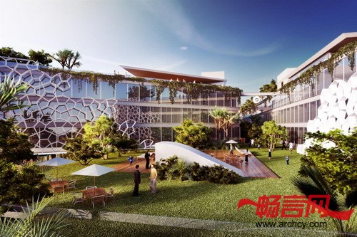 除了区内道路和中央广场以外,还需要了解项目的三种用途和当地的法规,因为这决定了建筑的外形。设计师没有将这几个不同用途的空间分成几个塔楼来建造,而是将不同的功能区域放在一个建筑的不同楼层里,让它们各自有自己的特色,同时每个区域之间又相互联系。
