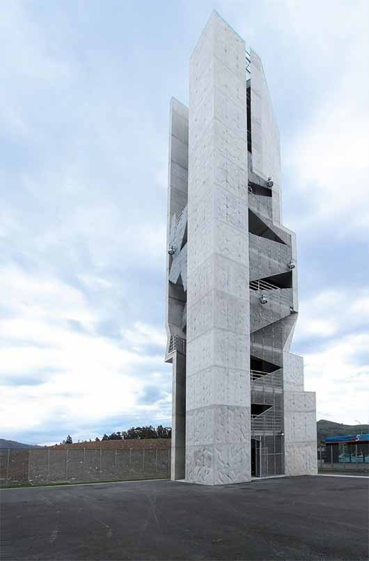 项目是位于西班牙Biscay的一座消防训练楼。建筑高度是32.5米,采用混凝土材料建成,上方的褶皱增加了垂直惯性,节省了材料,构成更加高效的结构。建筑外形纤细,具有紧凑美感。建筑混凝土框架采用工业流程加工组装。建筑内部没有特别的装饰,仅有混凝土和镀锌钢板表面。