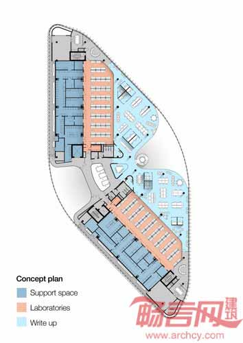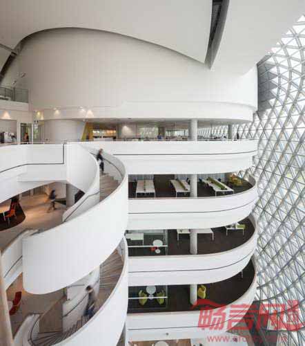 该建筑通过了LEED金质认证,成为首例通过此项认证的澳州实验室建筑。建筑生态可持续性表现在楼板被动式设计方面,设计相应室内功能区需求,提供了最大化的自然采光。
