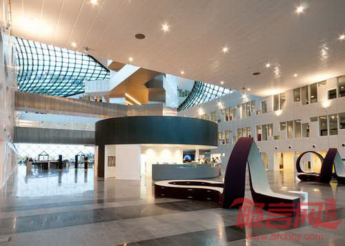 设计师表示,“这类规模的办公综合体通常是独栋建筑体。我们的理念是将'办公机器'结构成五栋小体量建筑。”