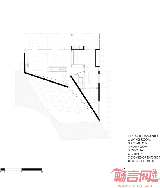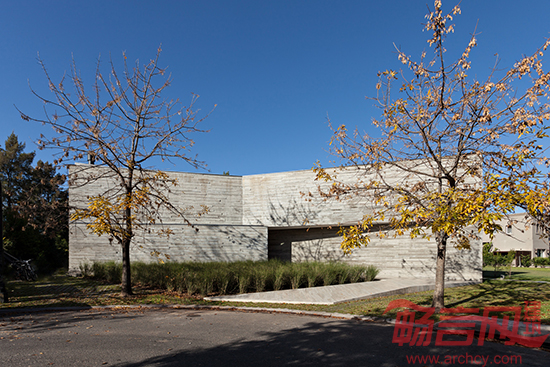 在阿根廷布宜诺斯艾利斯市,顺着一条静僻街道漫步,一座L形别墅引入眼帘。为此,设计方案尽量减少了构造元素,使建筑材料自身成为一种表达,使别墅本本身形成一种自我定义:纯原本状态的混凝土清晰地界定了公共空间和私人空间。