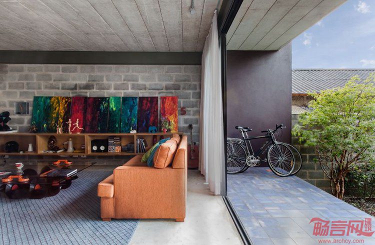 项目坐落于Vila Madalena地区的中心,这是巴西圣保罗当地的艺术家、设计师云集的波西米亚区。项目目的是考虑到业主的生活方式,并兼顾私密性和家庭聚会活动的功能。因此,设计方案构想为将建筑设立在场地后方,尽量多地把空间留给庭院。方案利用了场地景观和外部道路条件。轻质金属框架系统和预制混凝土板使主立面跨度达8米长,充分利用场地条件。