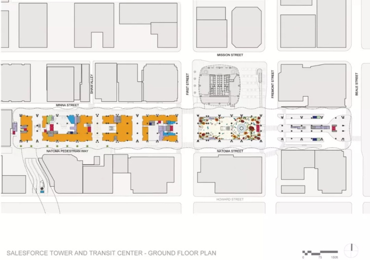 Salesforce塔楼及客运中心一层平面图 图片版权:PCPA