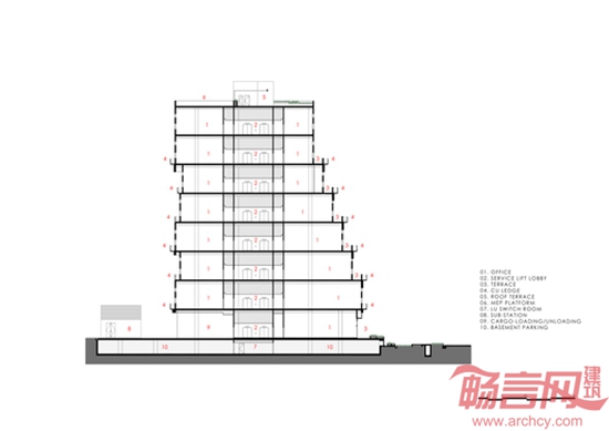 Ministry of Design建筑设计公司设计了新加坡100pp办公楼。项目面积12600平米,于2014年完工。业主委托设计公司为其黑领创意阶层员工创造一座办公楼。设计公司采用了多项建筑策略,重新定义了商业办公项目,提供可持续的办公体验。为了利用场地滨海优势,设计师创造了阶梯式阳台。该设计使建筑脱离了高架公路的喧嚣环境。同时,建筑以多个活力结构堆砌而成,而非静态的单一结构,赋予建筑天际线中独特的轮廓。