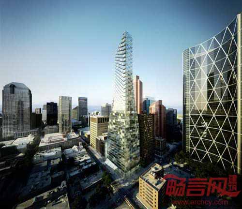Telus Sky摩天楼项目计划2017年秋季完工,位于第七大道街区的建筑将获取LEED铂金认证。项目将由丹麦BIG事务所和加拿大Dialog建筑事务所合作完成,此外还将得到Westbank开发公司的鼎力合作。