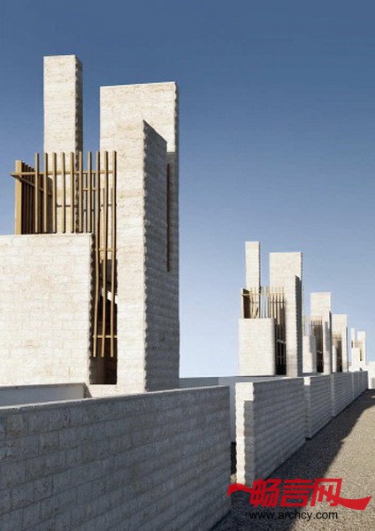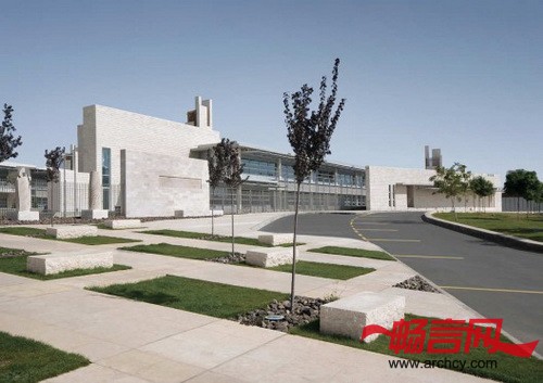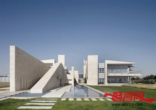 风塔让校园里的这些建筑从空中轮廓线上融合到了一起。它们不仅仅是大楼的一种装饰,它们还使这个广大的校园建筑有了一种节奏感,它们也是IAA的标志。风塔不仅使用了被动能源来保护环境,同时它们也是对传统风塔在校园建筑上的全新诠释。石材的应用表达了这座建筑的长生和永恒,而木质百叶窗又为它增添了一缕温暖之感,两者巧妙的融合,凸显了学校所代表的精益求精和教书育人。从室内来讲,这些风塔又提供了自然光线、自然通风和自然水池 --- 它们是室内路线天然、怡人的分界线。