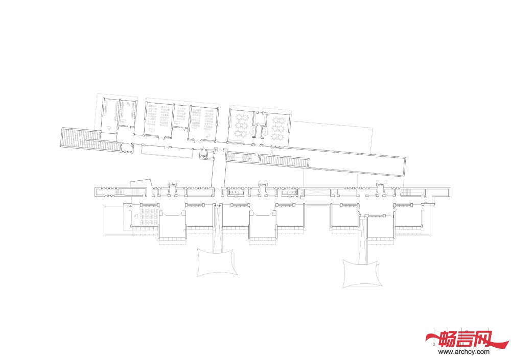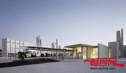 所有的建筑通过它们的外型、材料和自然光线凸显了它们所具有的双层含义:一端是古老的、具有当地特色的历史性建筑,另一端的建筑则现代感十足。石材是建造这些建筑的主要材料,建筑师用它进行了两种诠释:首先将它们粗略的切割,然后又将它们密集的堆砌起来,用以体现建筑的地方性色彩;另一方面,有些石头又在精密切割后,紧密的连接起来,让它与幕墙最边缘的钢板百叶窗一起,共同构建出建筑的现代感。
