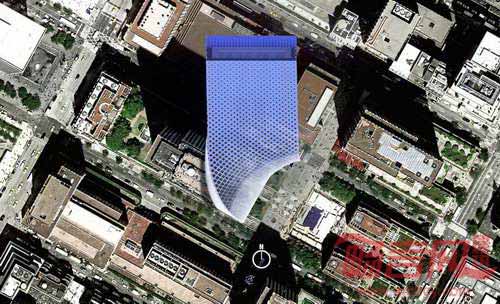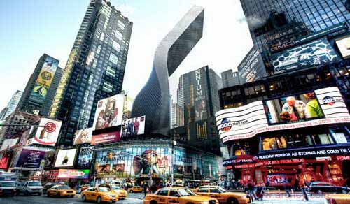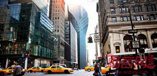 纽约人口近年来不断增多。即使碳排放得到减少,能源使用量依旧上升。意大利建筑师Paolo Venturella对这一问题提出了解决方案,设计出“弯曲大厦”。设计方案采用了光伏太阳能板,在使用量方面保持节制,防止光伏系统在纽约建筑应用的泛滥。根据所在建筑立面方向的不同,每块太阳能板均倾斜旋转,处于最能吸收光能的位置上。建筑一层设计体现了对曼哈顿格局的尊重,高层部分朝向太阳角度旋转,使太阳能板依次排列。建筑整体旋转和弯曲角度大约为超太阳倾斜30度角。同时,建筑斜肋架构构成不锈钢结构和性能表皮。