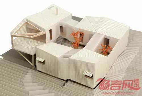 住宅社交空间临近于场地较高地势的街道,有利于住户眺望远方景致,而私人空间地势较低,更为靠近自然环境,因而拥有较好的私密性。建筑自身具有较强的雕塑感,如同一本书,可以书写主人未来更多的个人经历。宜居的屋顶能够收集雨水,用于花园灌溉。
