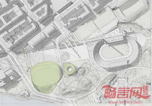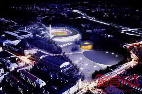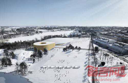 芬兰K2S建筑事务所设计了位于赫尔辛基奥运会原场地上的多用途体育场。体育场可容纳1.3万座位,邻近1938年赫尔辛基奥运会主场馆。项目围绕现在闲置的Mantymaki广场展开,完成后的项目可举办多种重要国际活动。建筑设有标志性的曲面天棚,一层设置了商业设施。室内主要区域位于地下层,并开设通往地铁线路的通道。