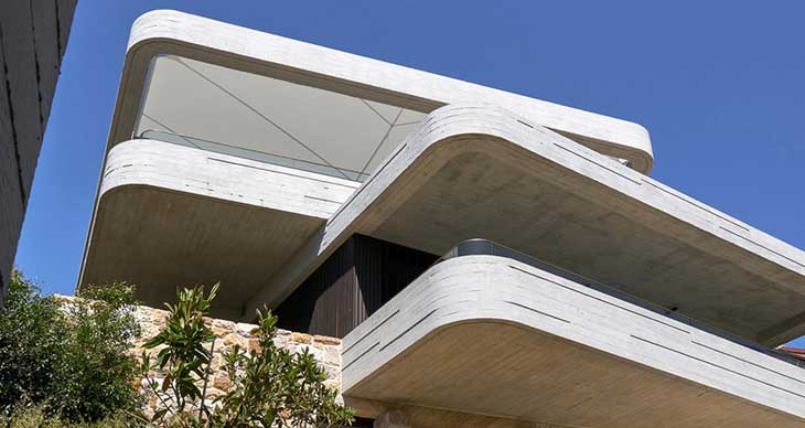 Luigi Rosselli完成了悉尼港口北侧的“书屋”住宅设计。业主是一个插画家和妻子,堆叠的建筑来源于堆砌的书本的概念,也参考了所在地区常见的沙洲和暗礁。设计师在巨大的砂岩层上方插入了边角柔和的混凝土板,将人造和自然环境合二为一。设计整合了场地上的砂岩,成为自下而上的古老的地理配景。