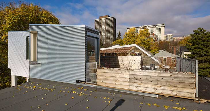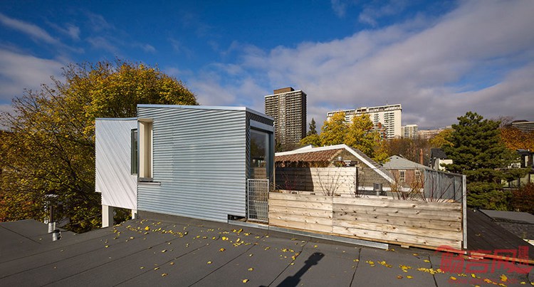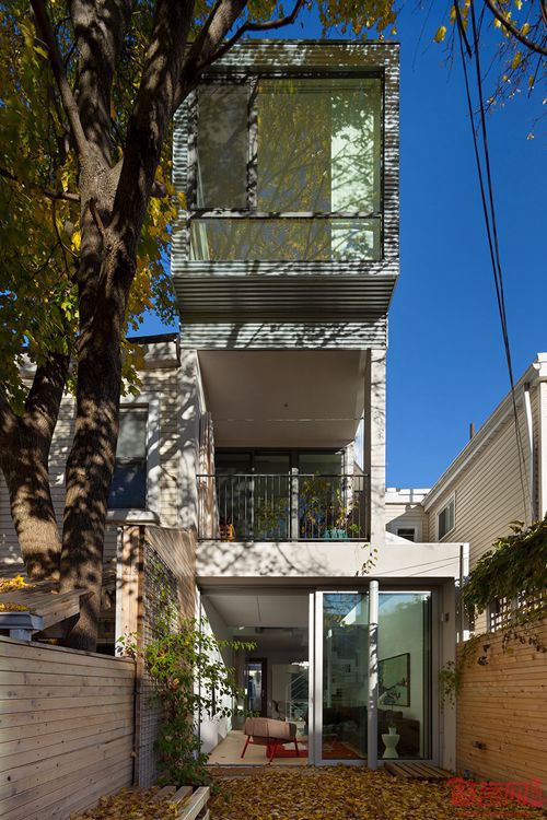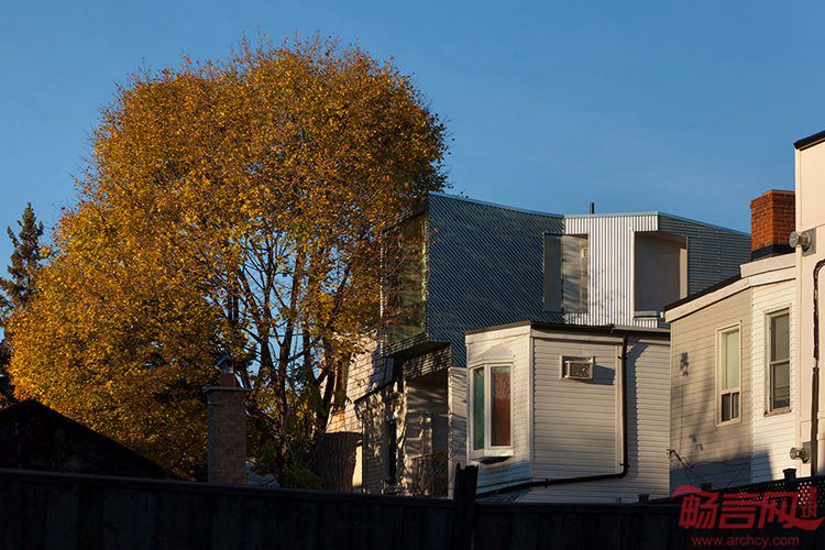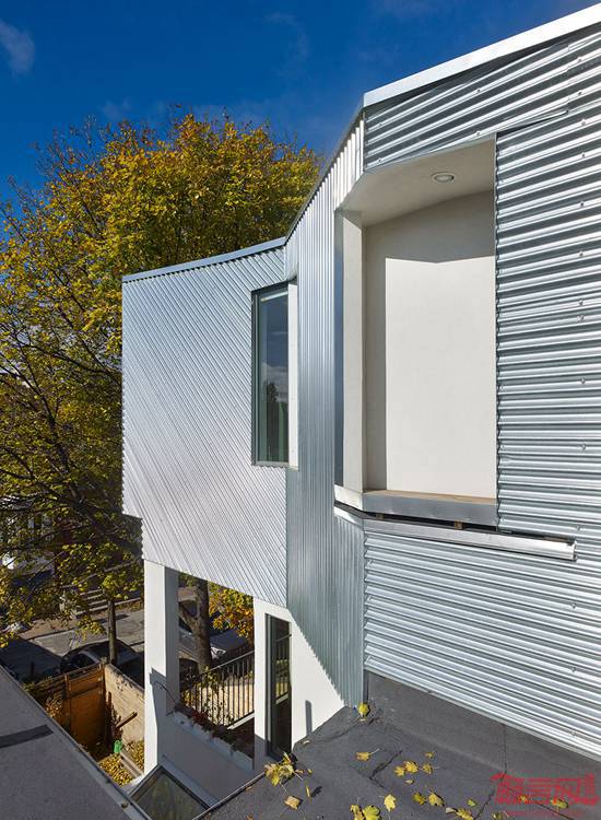 Aleph Bah工作室在加拿大多伦多19世纪排屋上添加了铝覆层的屋顶结构。Tacoma 12号住宅位于Summerhill,得到了全面翻新。建筑保留了曾经的外观,砖砌外立面被刷成统一的白色,正面门廊得到了升级改造。此次改造包括新增波纹铝板的新屋顶设施。从街道正面看不出改造,从后方可以看到。