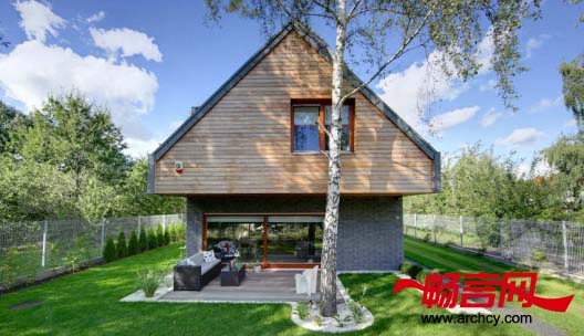 这座住宅的设计理念就是既要达到优化利用土地、又要满足投资者对住宅设计的要求、同时又能符合建筑地块的土地建设条件。住宅的建筑面积不是很大,仅有大约600平米,它的入口在南面,在其西面和南面设有公用部分。建筑师还将南立面的一楼“削去”了一部分,然后在这里建造了一个带有骑楼的露台,这样便使住宅与街道有了一定的距离。住宅的平面设计和外形设计都十分简单,但是却会是一座古典的住宅,这也是建筑师的设计初衷。“我用质地优良的砖块和水泥砌成外墙,用木质的材料为住宅添加一种柔和温暖之感,而钛锌板和五米的大玻璃窗则为这座外形古典的住宅赋予一种现代气息,由于一楼的南立面‘切去’了一小块,所以屋顶到此处便长出了一截,这样,我便在这一侧设计了一个分隔间,它不仅使住宅外形更加美观,它也为阁楼又添加了一处可用空间。”建筑师说。