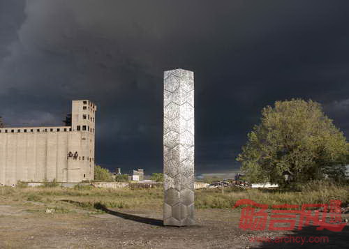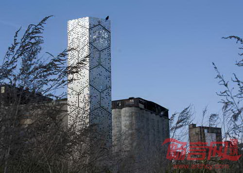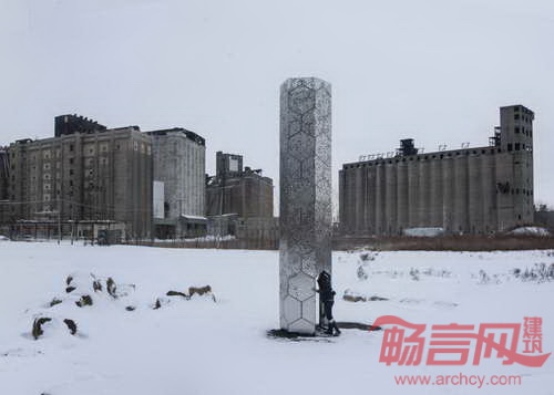 项目位于Buffalo河畔一组废弃谷仓之间,七米的建筑成为了此前占据一栋旧办公楼窗户的蜜蜂的“蜂房”。