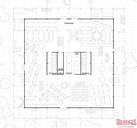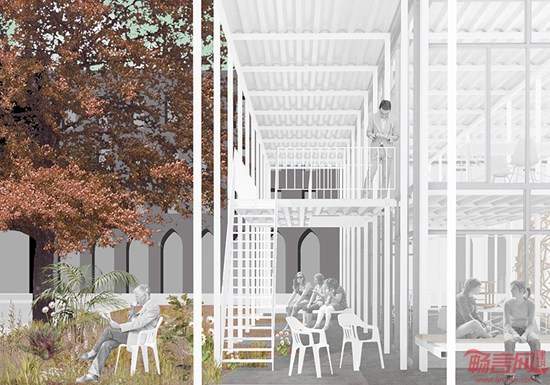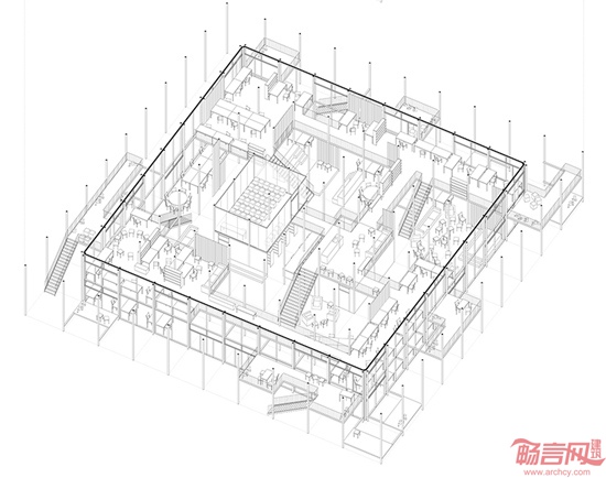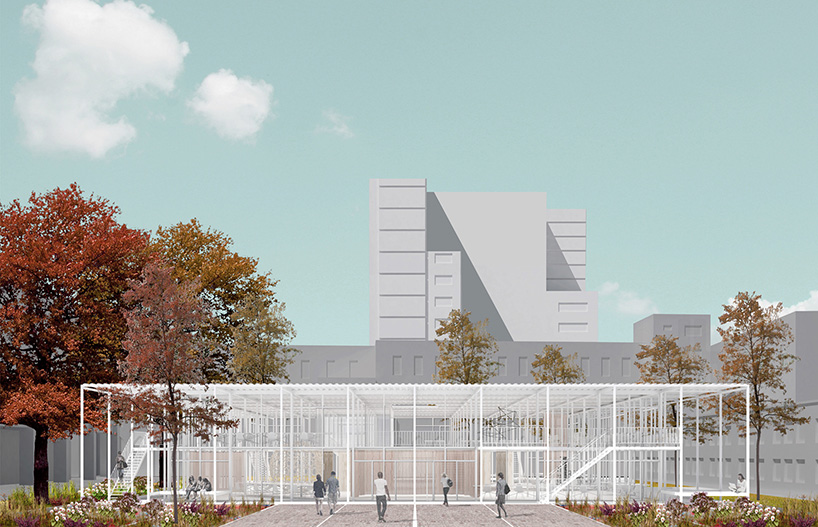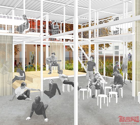 建筑师Gustav Duesing同Max Hacke合作的方案获得德国布伦瑞克工业大学Superstructure竞赛的优胜。项目是一座多功能、非正式建筑,用于举办多种类型的学生活动。场地是3.35米宽度的紧凑格局,可放置平台、桌椅和桥梁。设计方案允许灵活的布局组合,可配合窗帘、搁架和隔断结构。