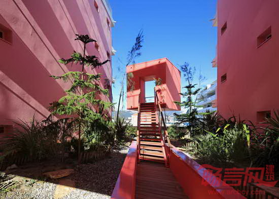 Pietri设计了位于法国南部的“红线”公寓楼,建筑设有混凝土墙面和屋顶公园。项目根据围绕中央花园的红色油漆作品命名,两座建筑涵盖了59套不同大小的公寓。项目一层设立了停车场和商业设施。屋顶包含狭长的绿化带,提供俯瞰两座楼房间景观的视野。