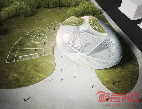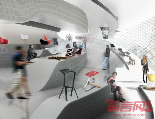 FR-EE/Fernando Romero公司提供了位于墨西哥城公园中的MADU艺术馆设计方案。建筑总体形式主要来自建造策略:波浪形混凝土板逐层叠加,上下层板各次高低部分相互接触。
