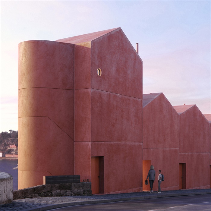 Caiano Morgado建筑师事务所完成了葡萄牙红色混凝土房屋设计。项目名为Vila Nova de Gaia,其标志性的红色格外醒目,将本土建筑屋顶以及当地港口酒窖的形式完美结合。