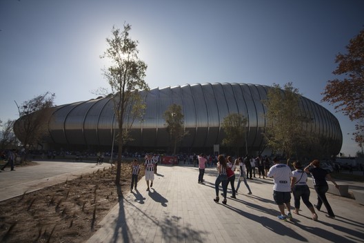 Populous工作室设计了墨西哥Monterrey的BBVA BANCOMER体育场。项目面积18.7万平米,于2015年完工。项目设计超出了人们对于南美球场的期待。受到地区历史悠久的酿酒业和钢铁制造业启发,体育场采用自持型三角结构,在外形上具有雕塑感,覆盖了圆形的铝面钢制桁架,对曾经兴旺的钢铁业致以敬意。酿酒业影子反映在球场的不对称轮廓上,南侧顶棚偏低,让观众可领略巍峨的Cerro de la Silla山峰。